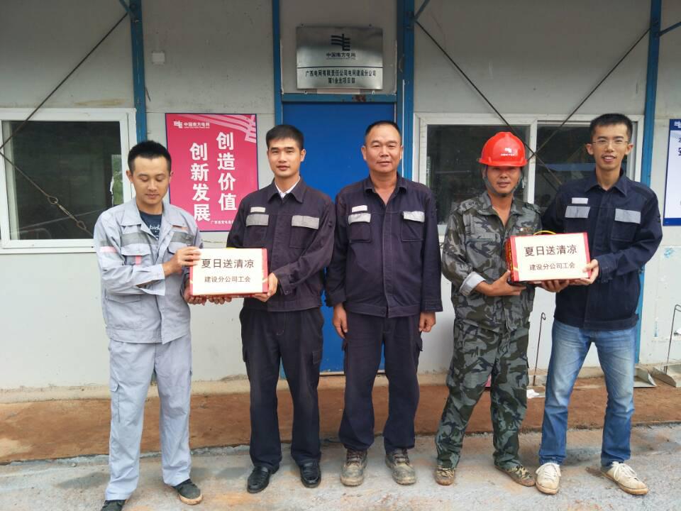 2018年9月1日,广西电网有限责任公司电网建设分公司为220kV响泉(高岭)变电站工程各参建单位送来了清凉饮品。